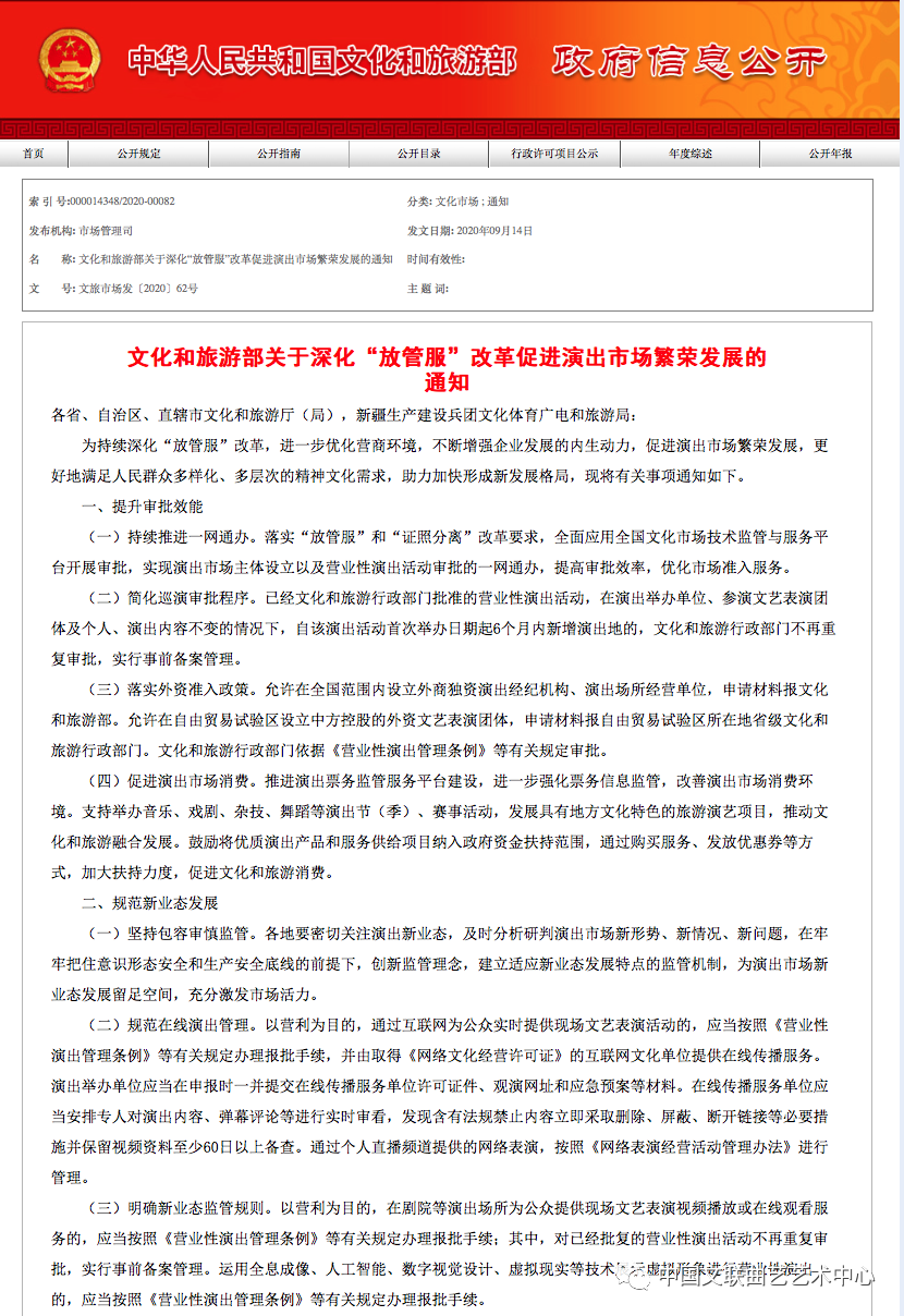 文化和旅游部关于深化“放管服”改革促进演出市场繁荣发展的通知